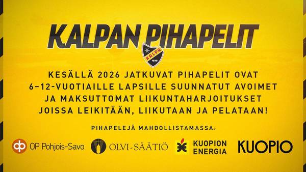 Juniori-KalPan ja KalPa Hockeyn järjestämät ilmaiset KalPan Pihapelit jatkuvat myös tulevana kesänä! Viime kesänä suursuosion keränneet KalPan pihapelit ovat avoimet liikuntaharjoitukset, jonne kaikki 6–12-vuotiaat lapset ovat tervetulleita liikkumaan, leikkimään ja harrastamaan. Pihapeleissä pelataan monipuolisesti erilaisia pallopelejä ja harjoitellaan motorisia taitoja, sekä yhdessä toimimista ja kaveritaitoja. Ohjaajina Pihapeleissä toimivat Juniori-KalPan koulutetut ohjaajat.